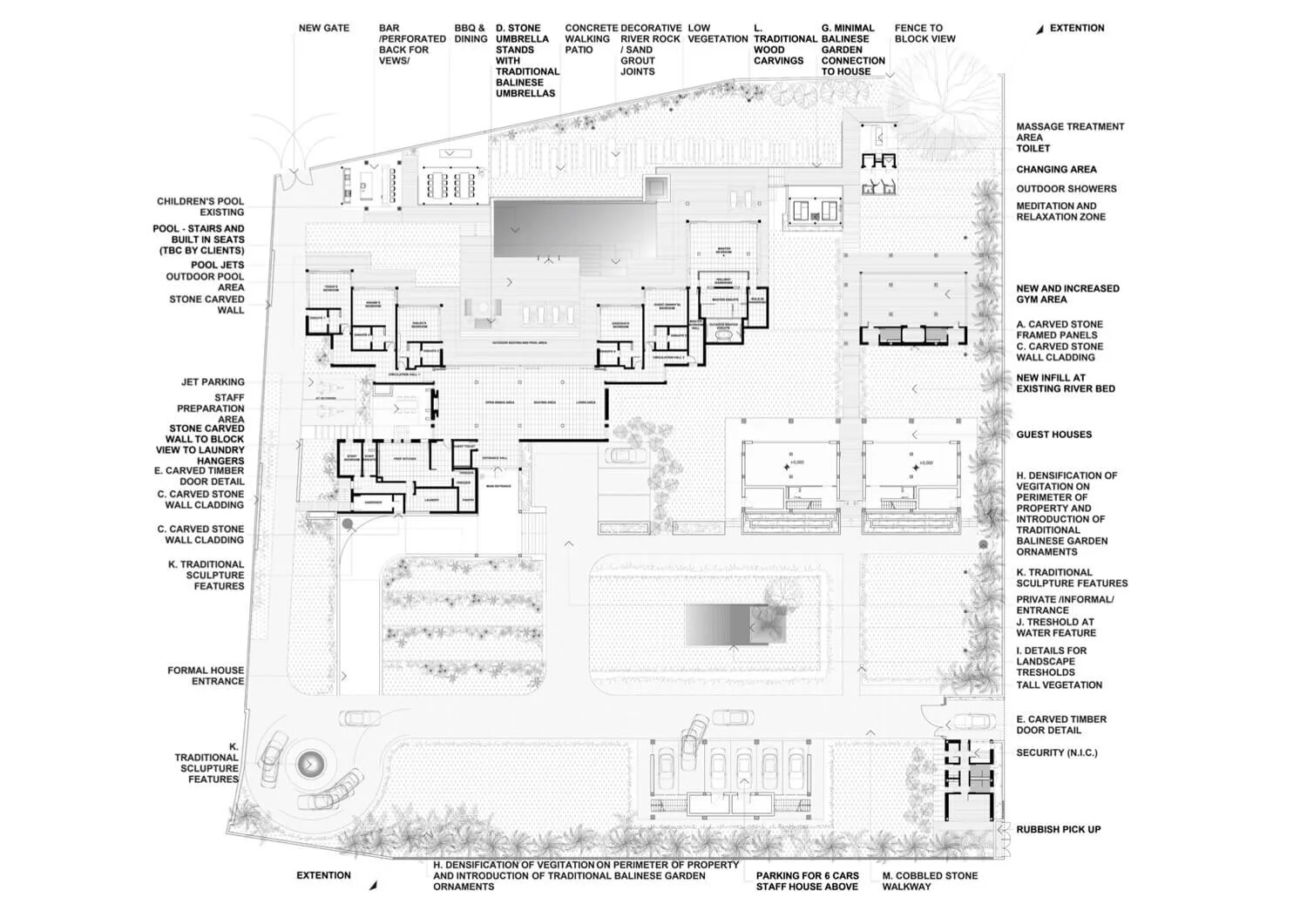 The conceptual site plan was developed to accommodate an integrated and wholistic design and layout incorporating Balinese planning principles and design details.