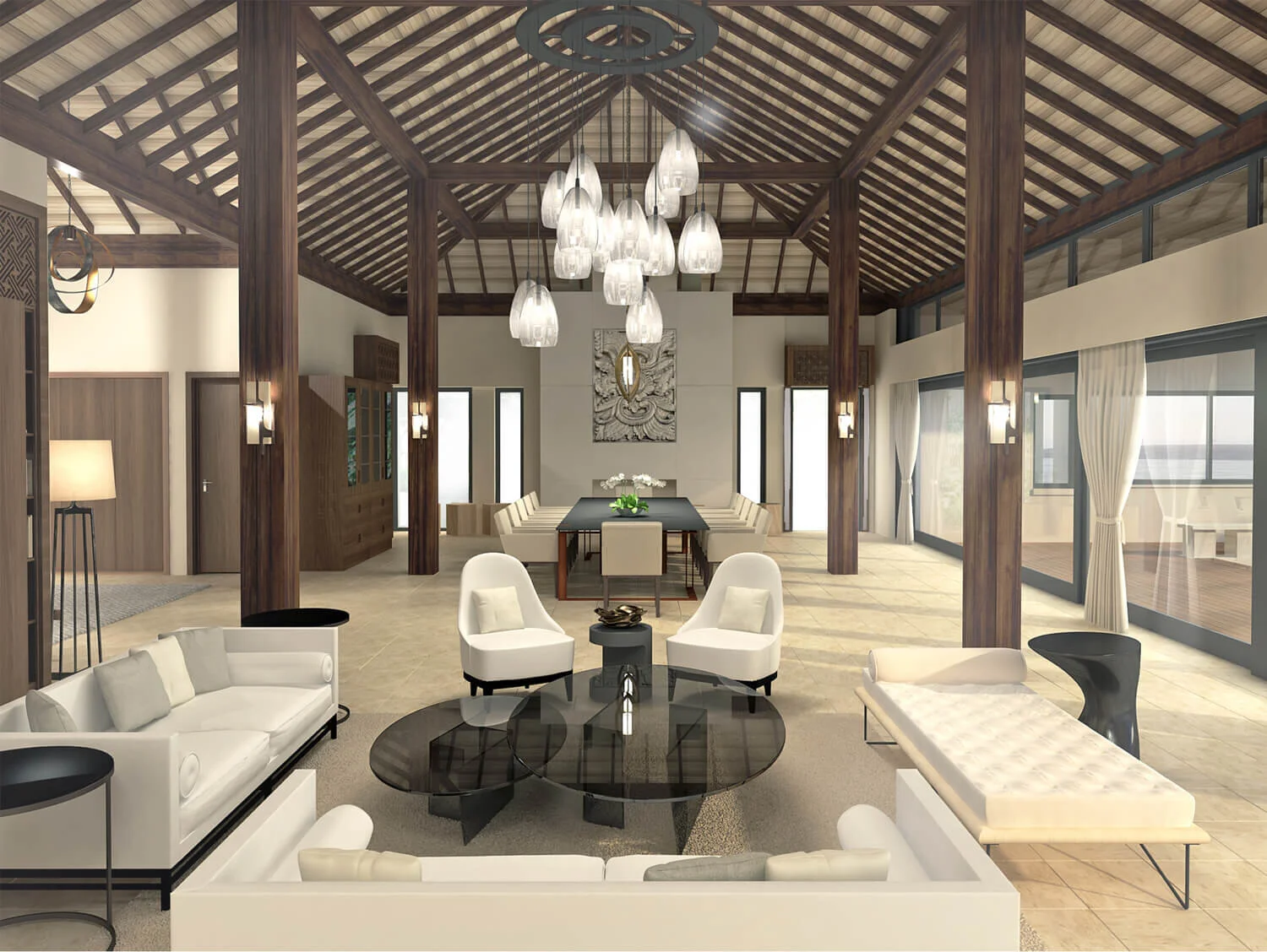 This luxurious estate is situated on the beautiful coast of the Angolan capital – Luanda. KNOF design was commissioned to turn this 7,500 sf property into a single family Balinese style holiday resort home with integrated landscaping concept and site layout including two additional guest houses, staff house, gym and security station.