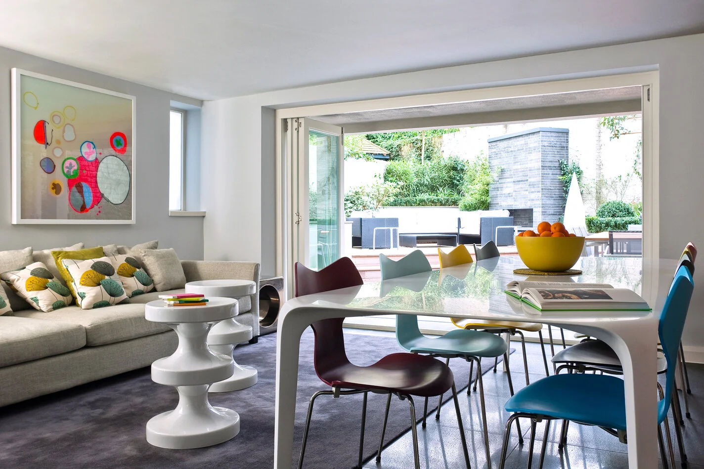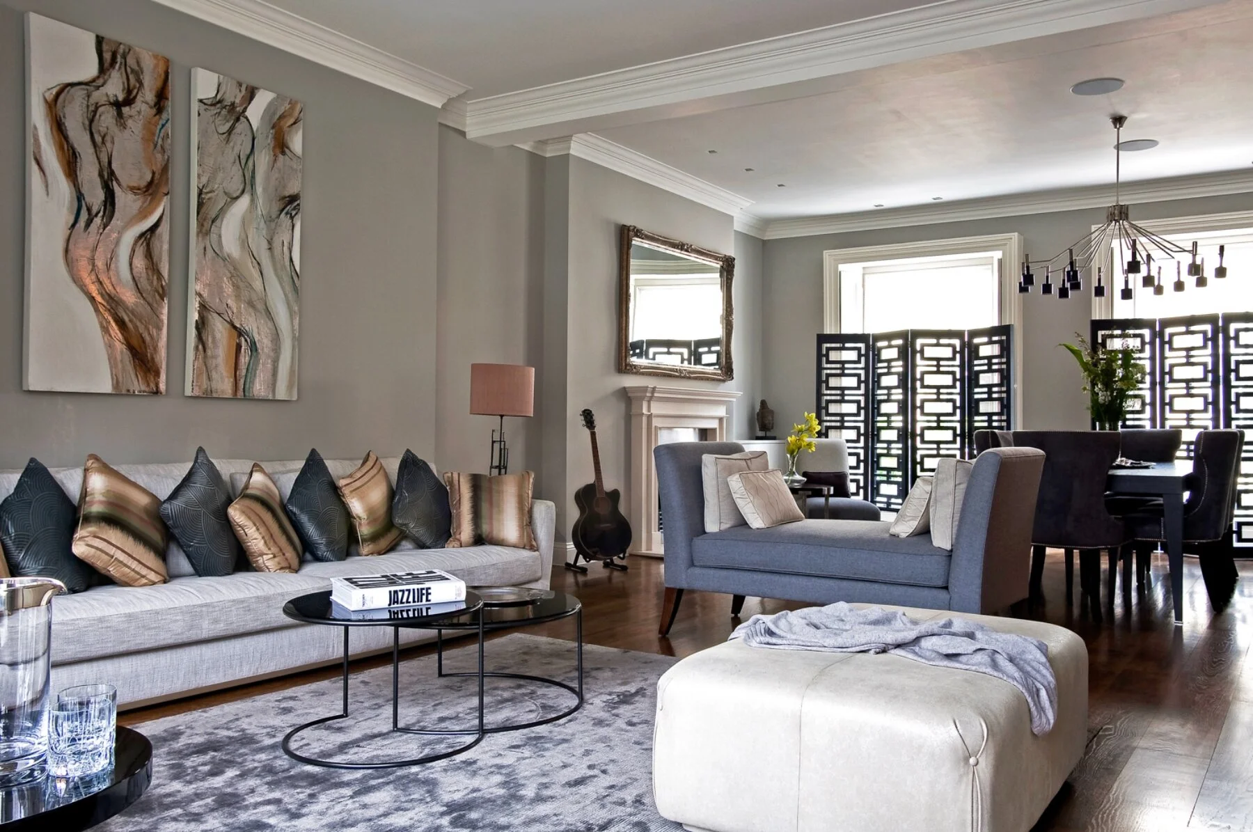 A newly excavated rear garden extension provides natural light and flow to the lower ground floor. A luxurious yet subtle approach to the floors above adds glamour and sensuality to the classic interior.